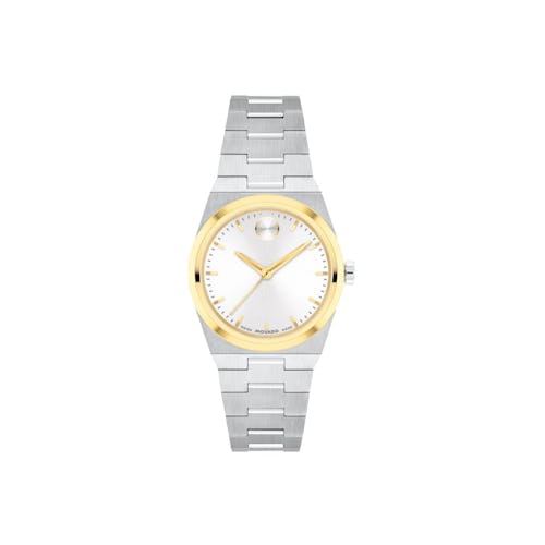 Тон желтого золота, современный, минималистичный: классические часы как украшение. Идеальное дополнение к любой стопке.