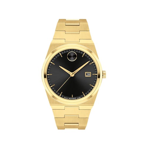 Геометрия ар-деко, темно-серый циферблат с эффектом омбре и позолоченный безель, который так же легко сочетается с джинсами или чем-то более изысканным, ваша подруга с безупречным вкусом добавит их в свой ежедневный гардероб.