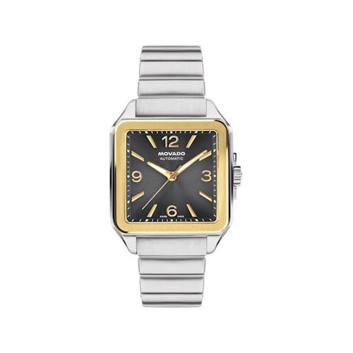 Любителю часов это понравится: швейцарский автоматический механизм (он заводится только по мере износа), угольный циферблат и выставочная задняя крышка, демонстрирующая механику в действии.